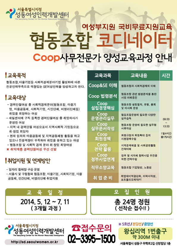 ● 문의: 성동여성인력개발센터(http://sd.seoulwomen.or.kr)