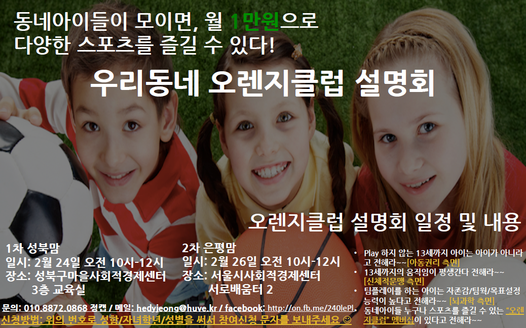 [안내] ☆ 아이들이 모이면 Play ! ☆ 동네스포츠클럽 ‘오렌지클럽’ 설명회