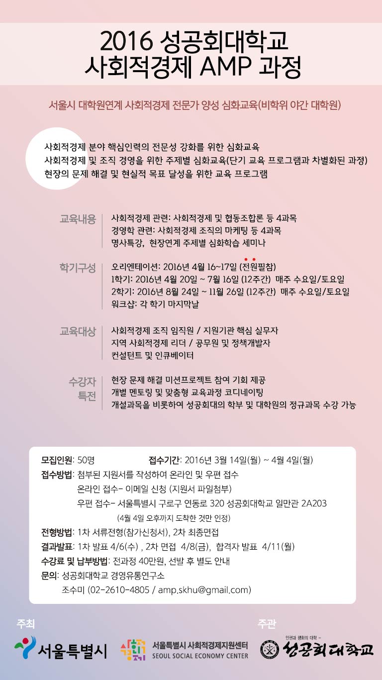 [안내] 2016 성공회대학교 사회적경제 AMP과정 수강생 모집(~4.4)