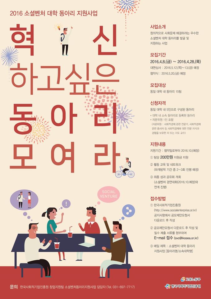 [공모] 2016 소셜벤처 대학 동아리 지원사업 참여 동아리 모집(~4.28)