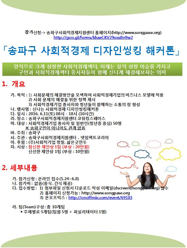 [안내] 송파구 사회적경제 디자인씽킹 해커톤(6.11)