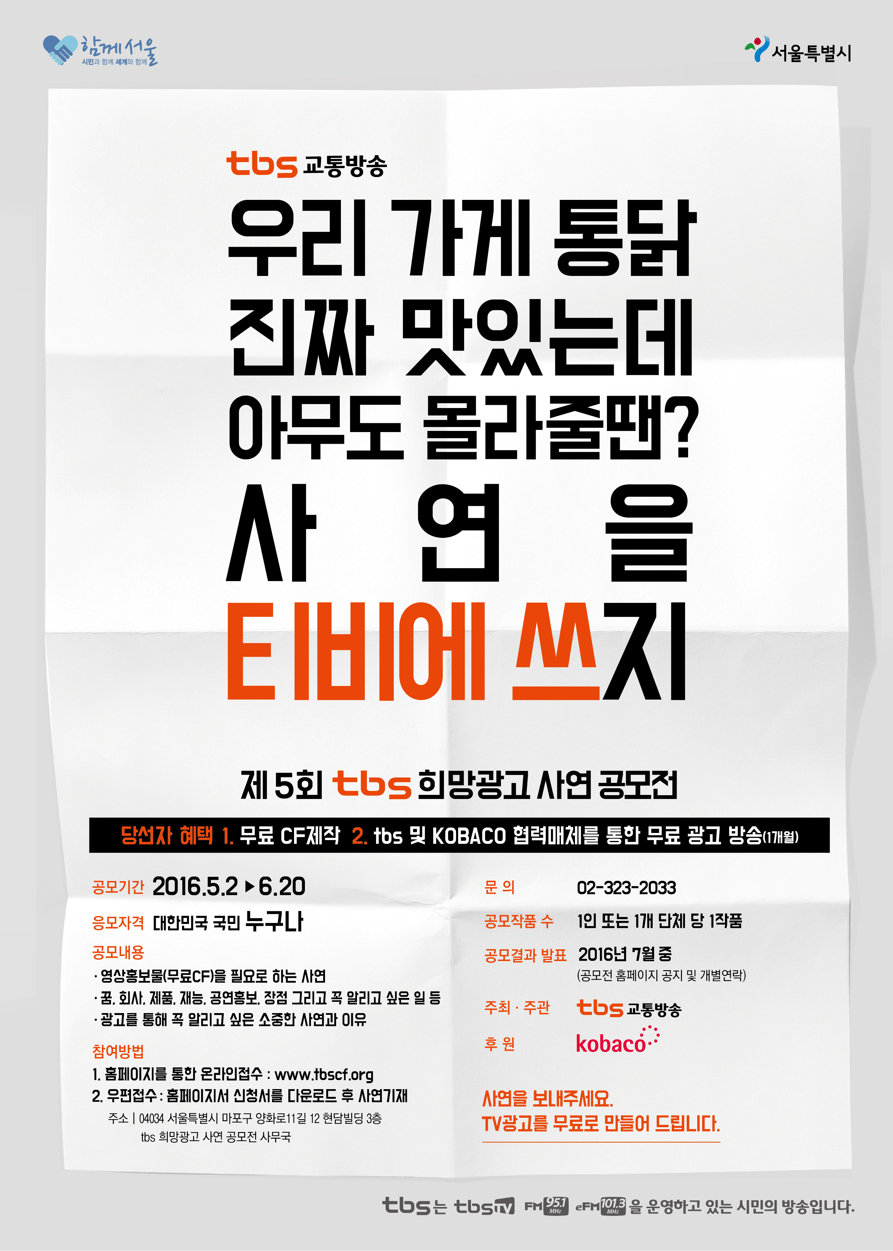 tbs 시민응원 프로젝트 <제5회 tbs 희망광고 사연공모전>