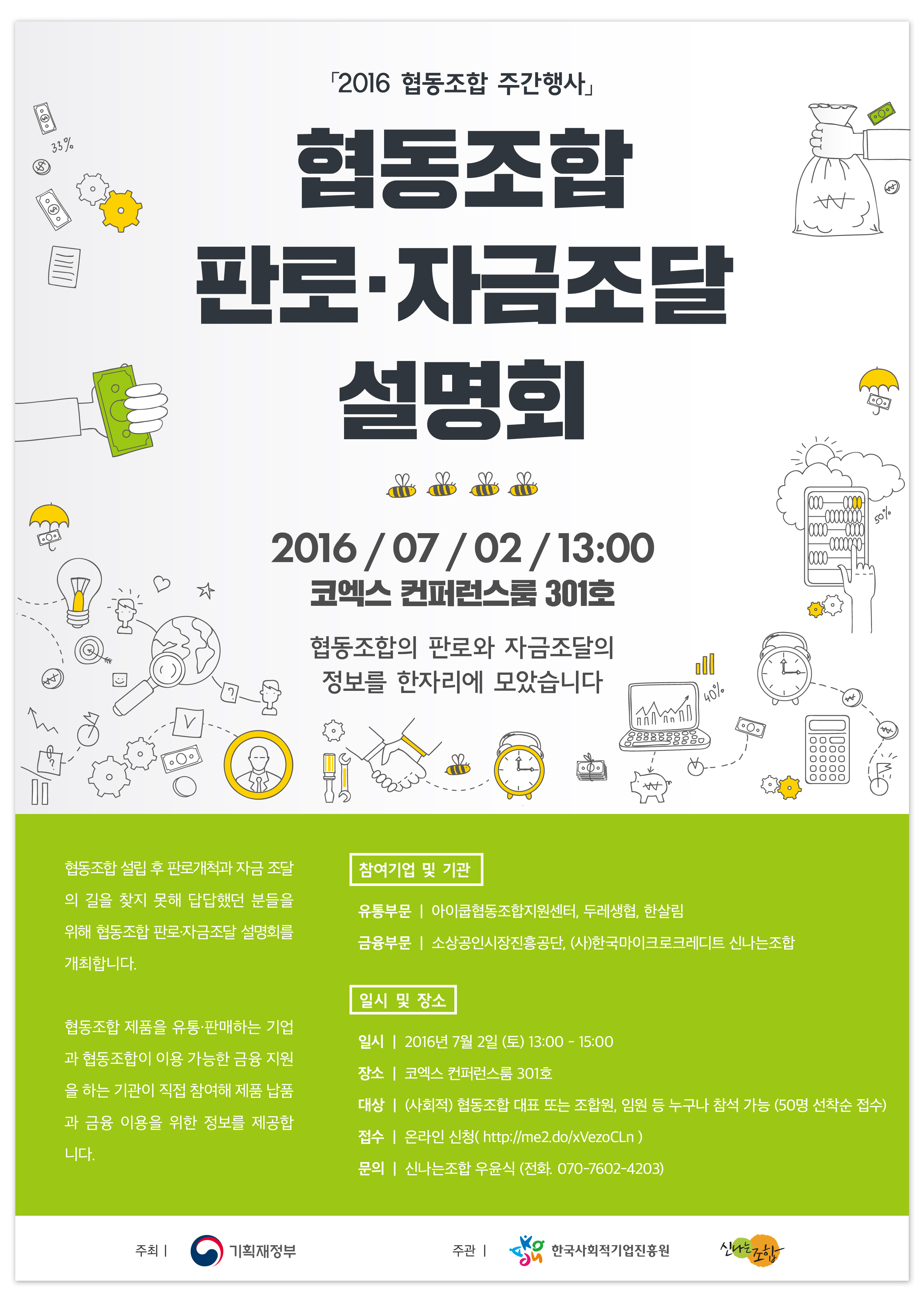 사회적경제 공지 [안내] 협동조합 주간행사 – 협동조합 판로/자금조달 설명회(7.2) 2016-06-21 조회 : 873댓글 : 0 주최/주관 : 관리자 모집일정 : 2016-07-02 ~ 2016-07-02 1602620_협동조합-판로·자금-조달-설명회-웹포스터.jpg 참가신청 http://me2.do/xVezoCLn 1602620_협동조합 판로·자금 조달 설명회 웹포스터 < > 인쇄 목록 수정