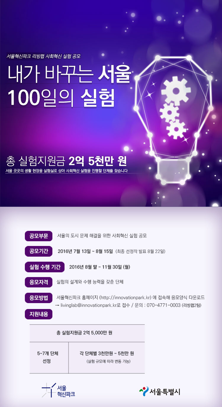 [공모] 「내가 바꾸는 서울, 100일의 실험」-서울혁신파크 리빙랩 ‘사회혁신 실험 공모’