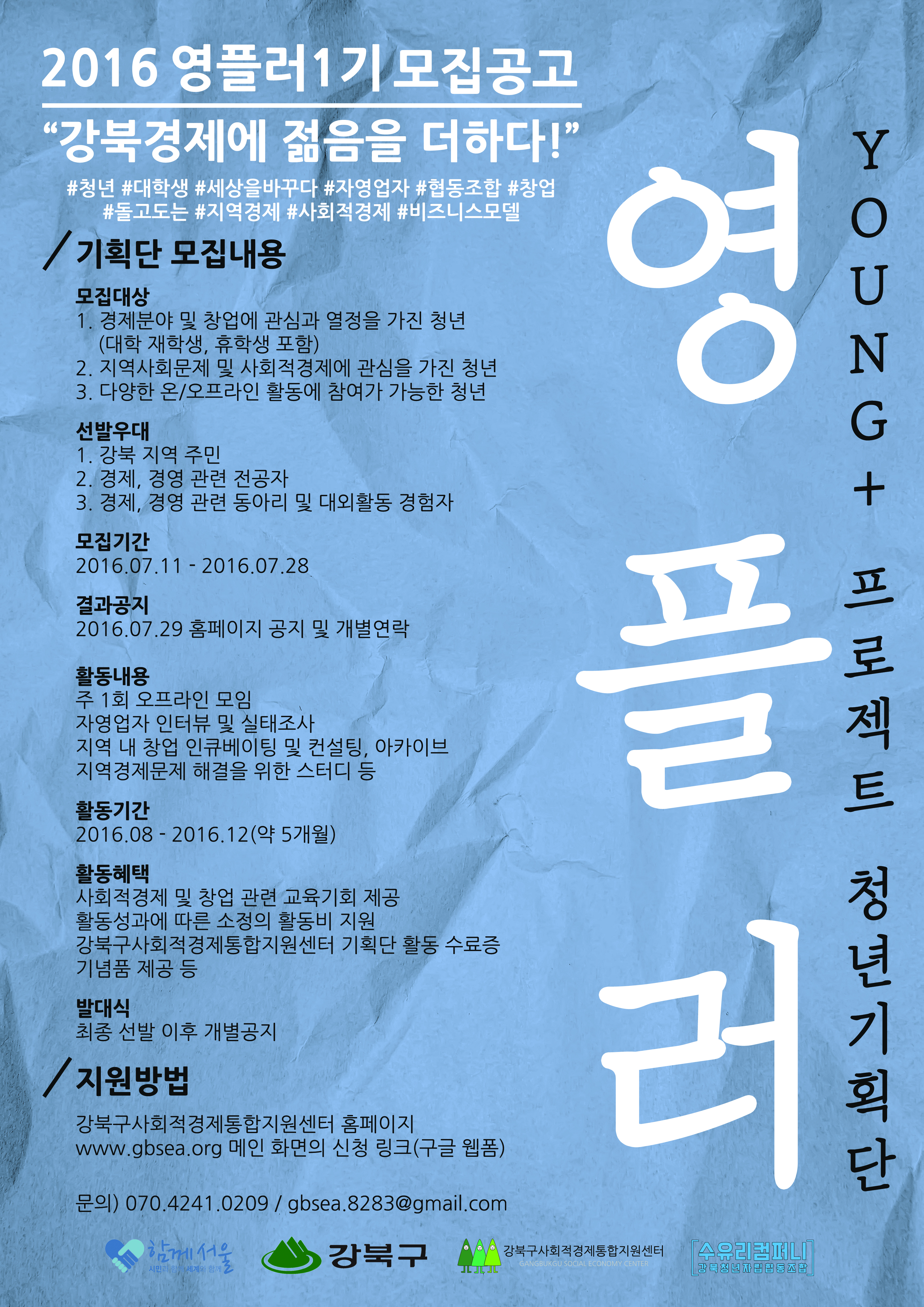 [공고] Young+프로젝트 청년기획단 모집 – “강북 경제에 젊음을 더하다!”(~7.28)