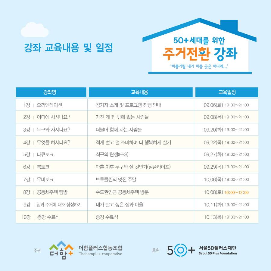 더함플러스협동조합과 서울50플러스재단은 삶의 전환기 50플러스 세대를 위한 주거전환 강좌를 엽니다.