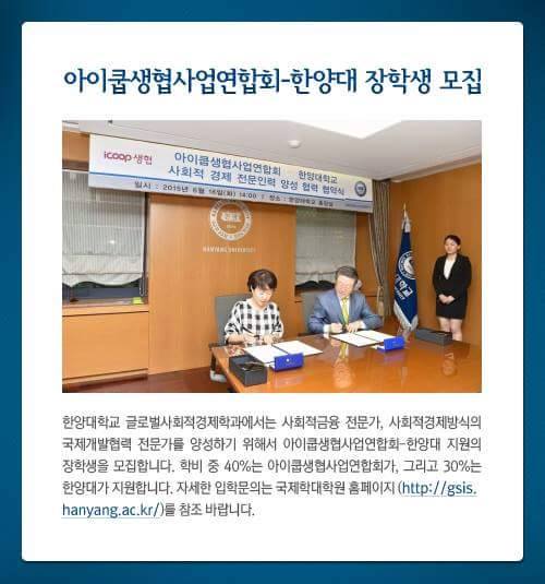 [안내] 2017학년도 한양대 국제학 대학원 글로벌사회적경제학과 장학특전