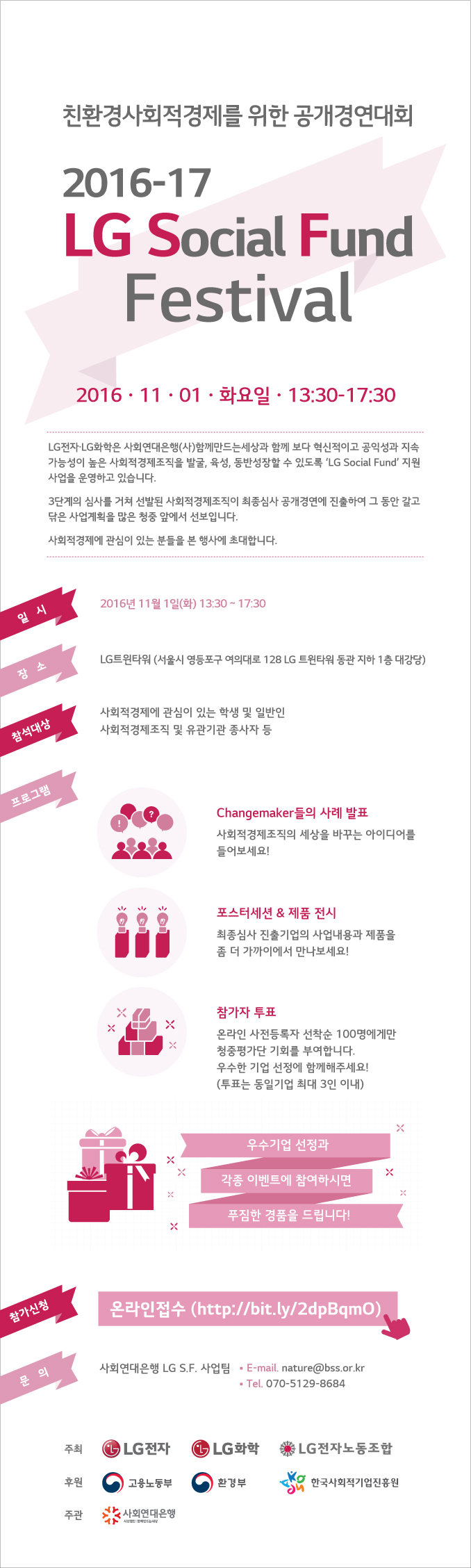 사회적경제 공지 [안내] ‘LG Social Fund’의 최종 공개경연대회(11.1) 2016-10-21 조회 : 429댓글 : 0 주최/주관 : 관리자 2016-17LGSF_공개경연_웹자보구글.jpg 신청 바로가기 http://bit.ly/2dpBqmO 2016-17LGSF_공개경연_웹자보(구글) < > 인쇄 목록 수정