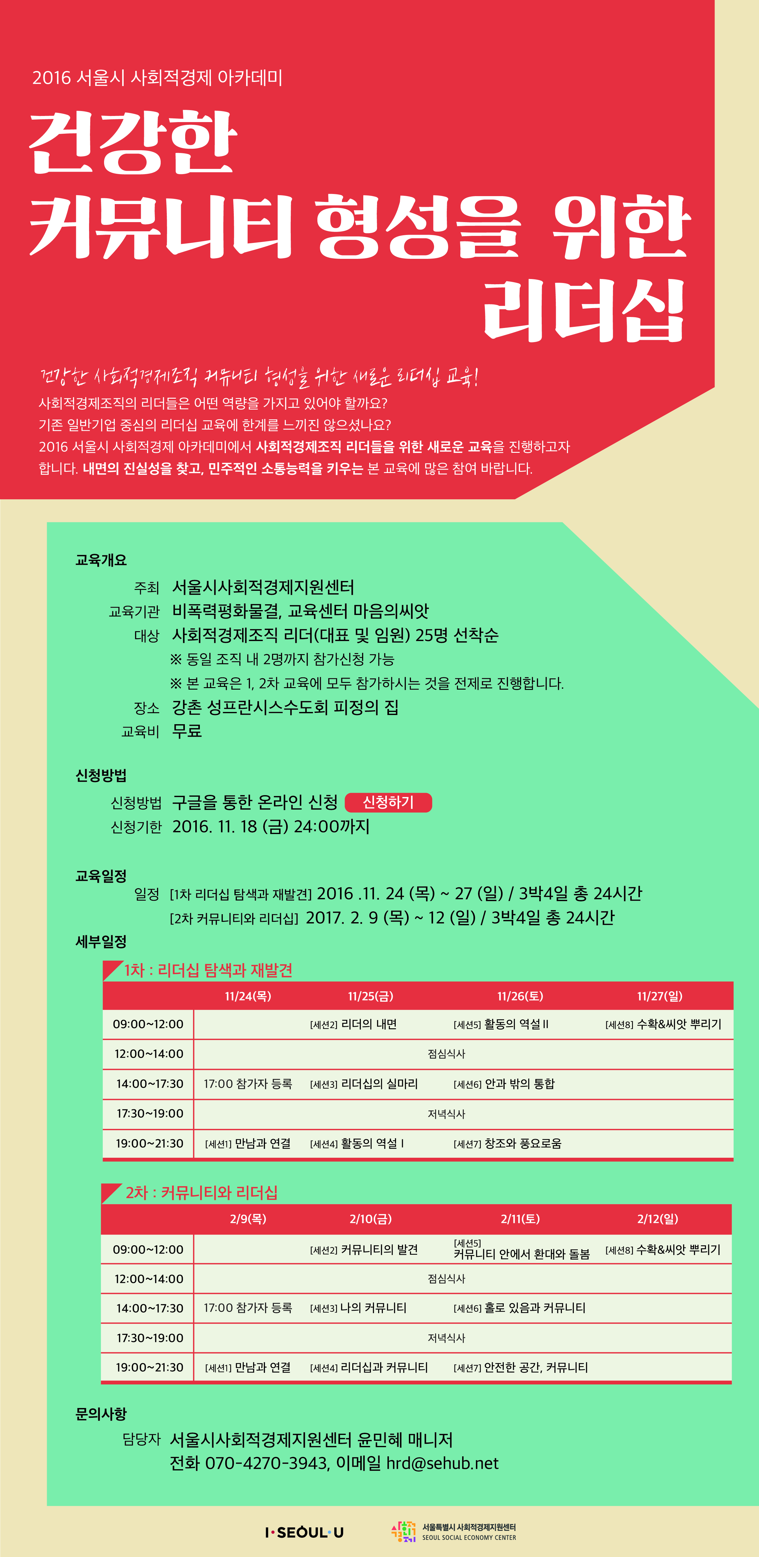 [안내] 사회적경제조직 리더를 위한 “건강한 커뮤니티 형성을 위한 리더십”교육 신청 안내(~11.18)