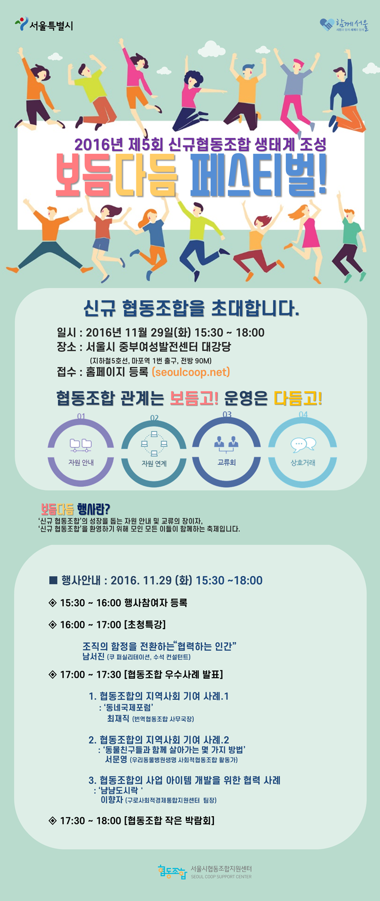 [안내] 신규협동조합 생태계 조성 <제 5회 보듬다듬 페스티벌> (11.29)
