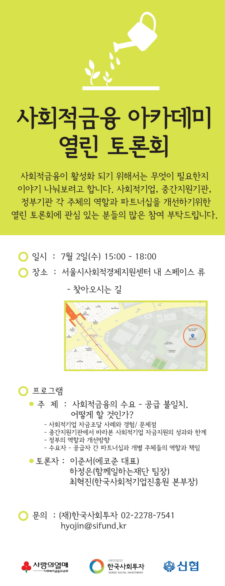 사회적경제 공지 [안내] 사회적금융 아카데미 열린 토론회가 열립니다(7.2) 2014-06-30 조회 : 723댓글 : 0 주최/주관 : 관리자 모집일정 : 2014-07-02 ~ 2014-07-02 금융 사회적금융 신협 에코준 토론회 한국사회적기업진흥원 함께일하는재단 < > 인쇄 목록 수정