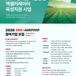 [MYSC] 2026 농식품 기술창업 액셀러레이터 육성지원 사업 EMA AGRIFOOD 5기 참여기업 모집 🌾🌾 “B.I.G Field(밭)에서 B.I.G Yield(수확)을 얻다” EMA AGRIFOOD는 푸드테크, 그린바이오, 스마트농업 등 농식품 산업 전반에서 혼합금융, 임팩트, 글로벌을 키워드로 혁신을 만드는 창업 7년 미만 농식품 스타트업을 찾습니다. ■ 지원하기 https://ema.kr/2 ■ 모집 개요 – 지원대상: 2026.03.12 기준 창업 7년 […]