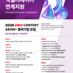 [🔥2026 EMA Content GROW+ 모집🔥] ■ 사업 개요 콘텐츠 산업 전반에서 IP와 기술, 데이터를 결합해 새로운 비즈니스 모델을 만들고 본격적인 성장(스케일업)을 준비하는 콘텐츠 스타트업을 발굴·육성하는 투자 연계 액셀러레이팅 프로그램입니다. ■ 주요 혜택 1. 사업화 자금 지원 최종 선발 기업당 최대 9천만 원의 사업화 자금을 지원합니다. 2. 투자·TIPS·LIPS 연계 우수 기업 대상 최대 […]