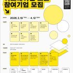 1. 행사개요 – 행 사 명 : 2026년 서울스프링페스티벌 – 행사기간 : 2026. 5. 1.(금) ~ 2026. 5. 5.(화) 11:00 ~ 22:00, 5일간 – 사회적경제기업 및 소셜벤처의 제품 홍보와 판로 확대를 도모하고, 시민과의 직접적인 만남 기회를 제공 2. 모집개요 – 공 고 명 : 2026년 서울스프링페스티벌 참여기업 모집 – 모집규모 : 판매부스 10개 기업 […]