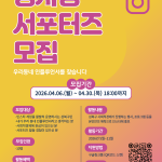 [2026년 청년 새로:온 창업동아리 모집] 사회문제도 해결하고, 최대 200만원 지원금도 받는다고?! 👀 주변의 사회문제를 발견하고, 비즈니스 모델로 해결해보는 진~짜 새로운 창업동아리 활동🐣 “최고의 경험이었어요!”라는 후기가 가득한 청년 새로온 창업동아리 시즌 2!💌 창업과 사회문제 해결에 관심있는 청년 여러분을 기다립니다 🙏🏻 ────────── 2026년 청년 새로:온 창업동아리 🔹모집기간 : 3. 13.(금)~4. 13.(월) 🔹모집대상 : 24세 이하 […]