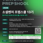 사회혁신을 이끌어갈 임팩트 스타트업 및 예비·초기 소셜벤처를 위한 「2026년 소셜벤처 프렙스쿨(Social Venture Prep-School) 13기」 참여기업을 모집하오니, 창업가 여러분의 많은 지원 바랍니다. ○ (신청기간) 2026.03.03.(화) ~ 2026.03.09.(월) 16:00까지 ○ (모집분야) – UN SDGs 기반 임팩트 스타트업 · 소셜벤처 창업 아이템 보유 팀(기업) – 사회문제해결을 위한 창업 아이템 ○ (신청대상) – 지역 무관 […]