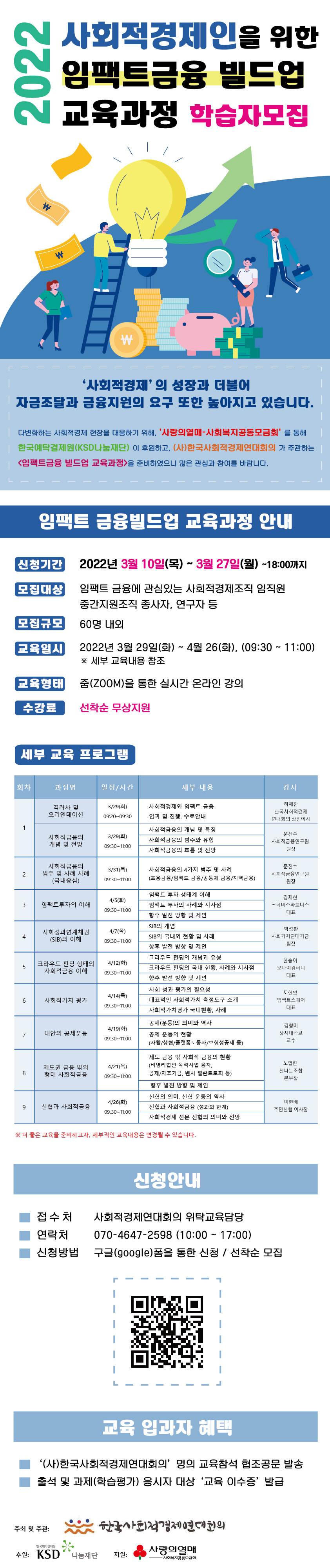 2022 사회적경제인을 위한 임팩트금융 빌드업 교육과정 학습자 모집