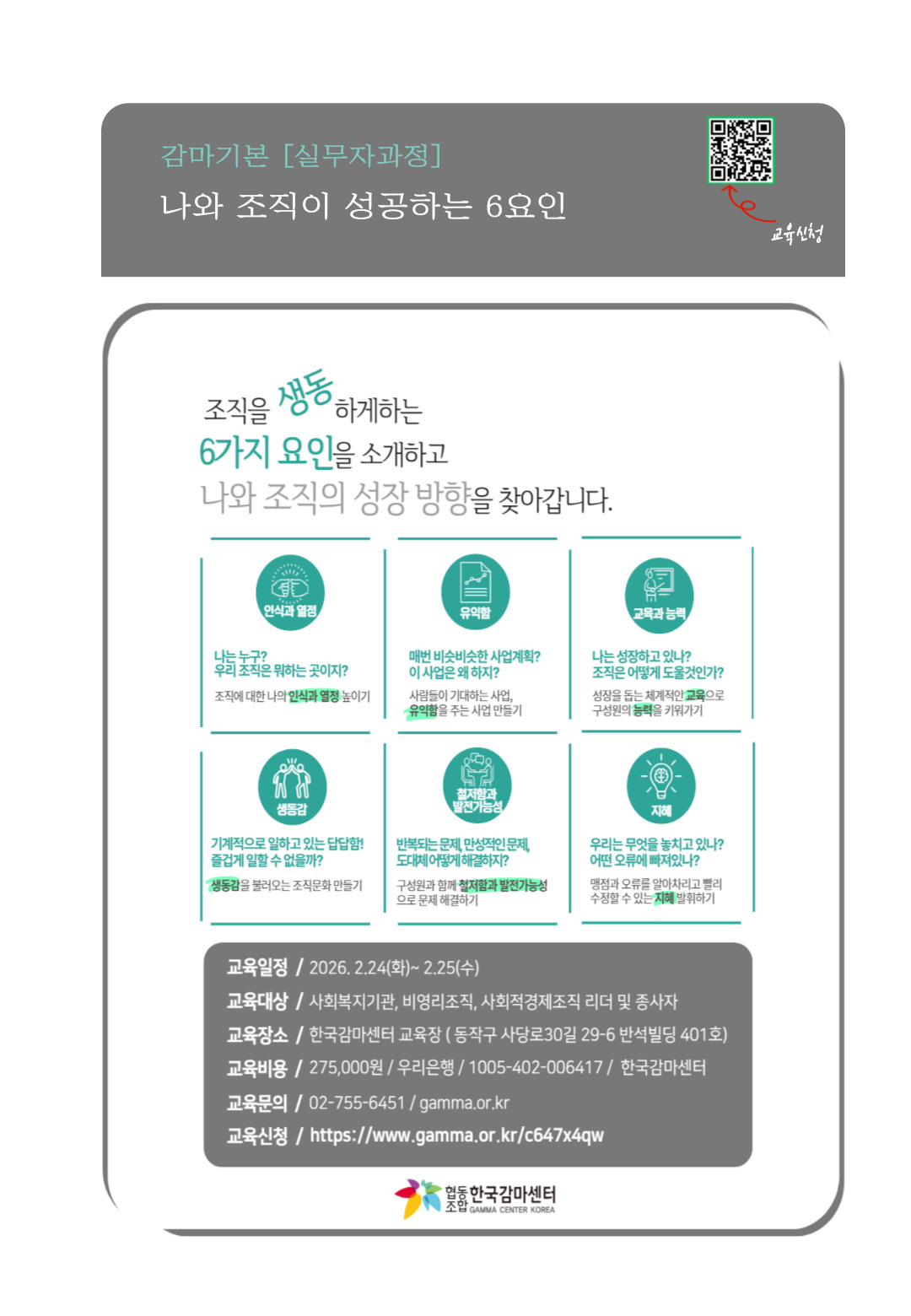2) 홈페이지>정규교육 신청>감마기본 실무자과정[나와조직이성공하는6요인] 2월