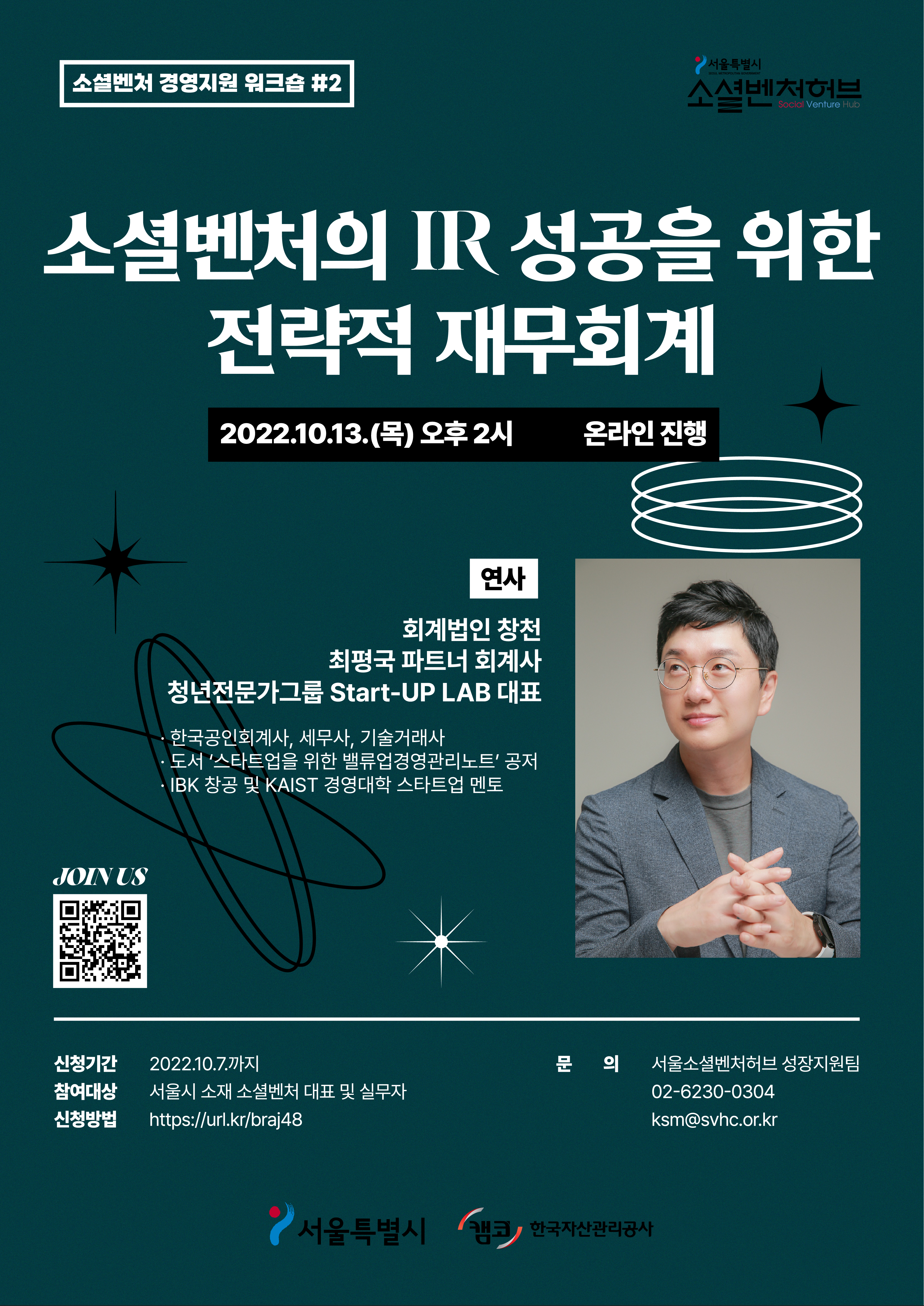 🚩 주제 : 소셜벤처의 IR 성공을 위한 전략적 재무회계 (강사 : 회계법인 창천 최평국 회계사)