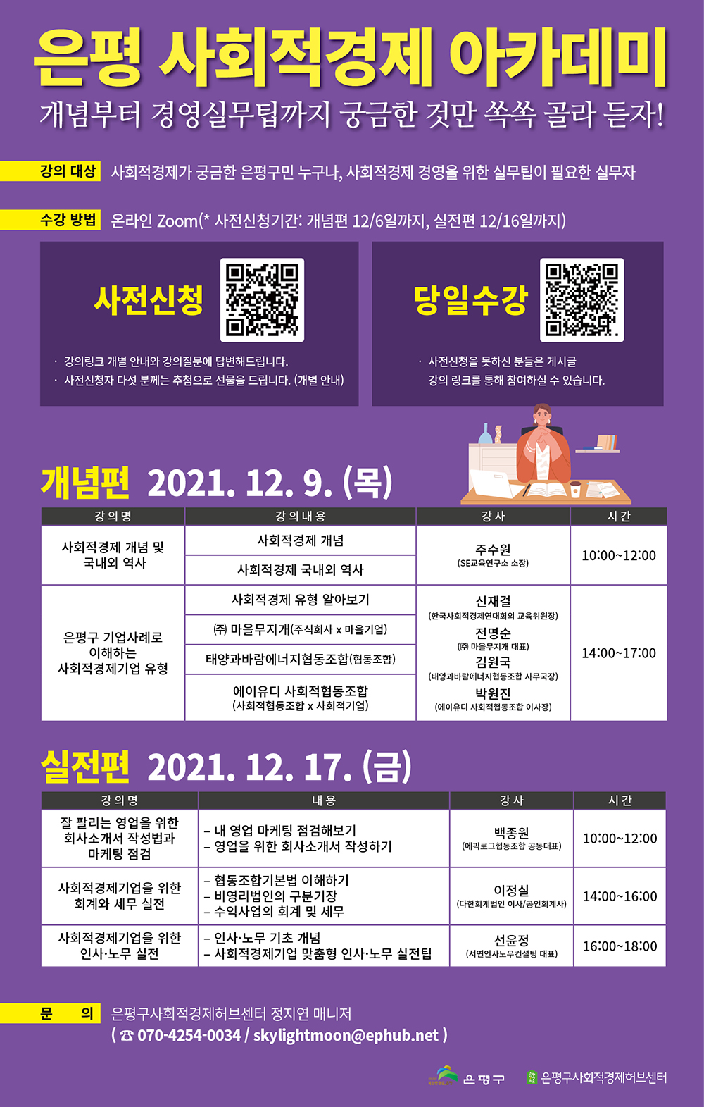 2강 | 2021.12.6.(목) 오후 2 ~ 5시 | 은평구 기업사례로 이해하는 사회저경제기업 유형