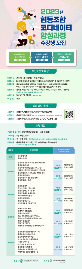 <2023년 협동조합 코디네이터 양성과정> 수강생 모집