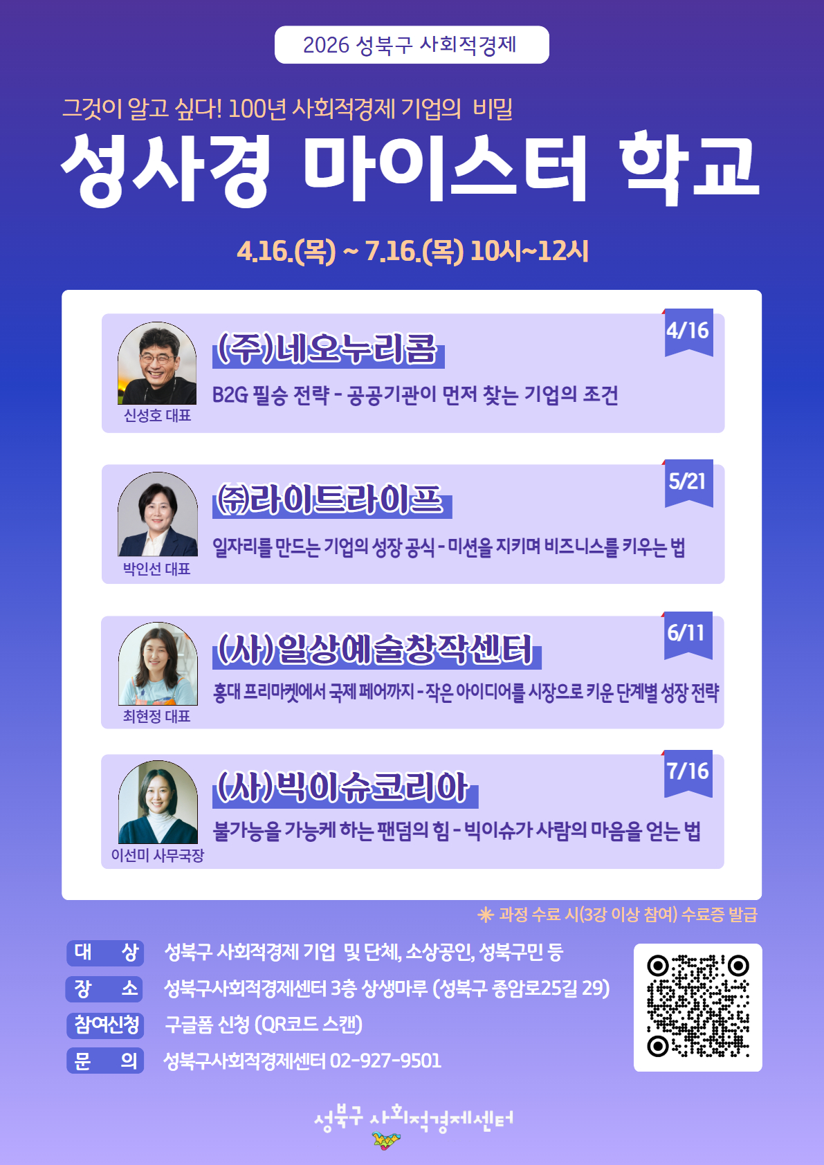강사 만족도 98%에 달하는 <성사경 마이스트학교>가 올해에도 화려한 라인업으로 돌아왔답니다.