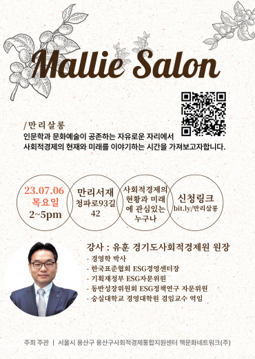 [안내] 만리살롱 : 유훈 경기도사회적경제원 원장 (~7.5.) 일시 2023-07-06 주최/주관 용산구사회적경제통합지원센터 장소 만리서재(청파로93길 42) 모집기간 2023-06-08 ~ 2023-07-05 참가비 0원 관련 URL 신청/문의 이메일 yse.or.kr@hanmail.net 신청/문의 전화 02-318-5200 짧은주소 https://sehub.net/qcJsd 신청링크 ▶ bit.ly/만리살롱 수정 댓글이 닫혀있습니다.