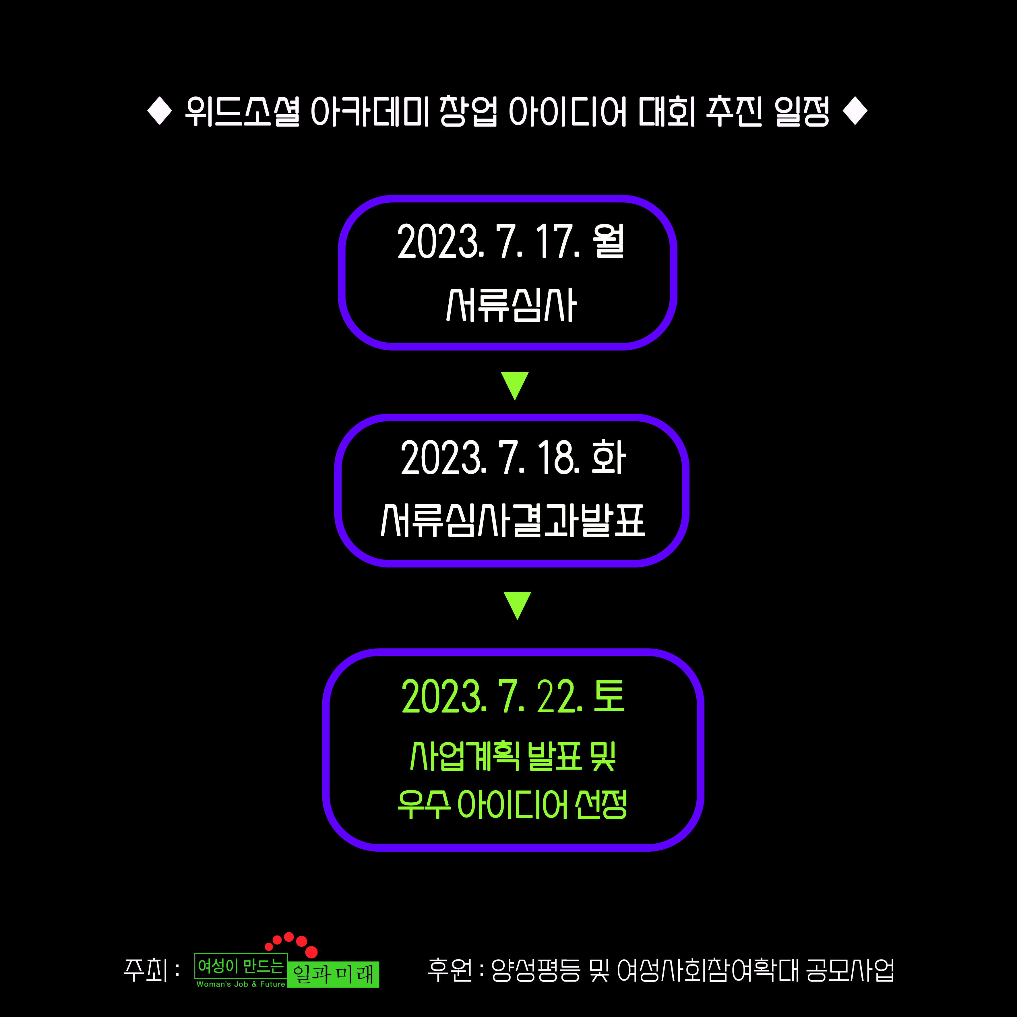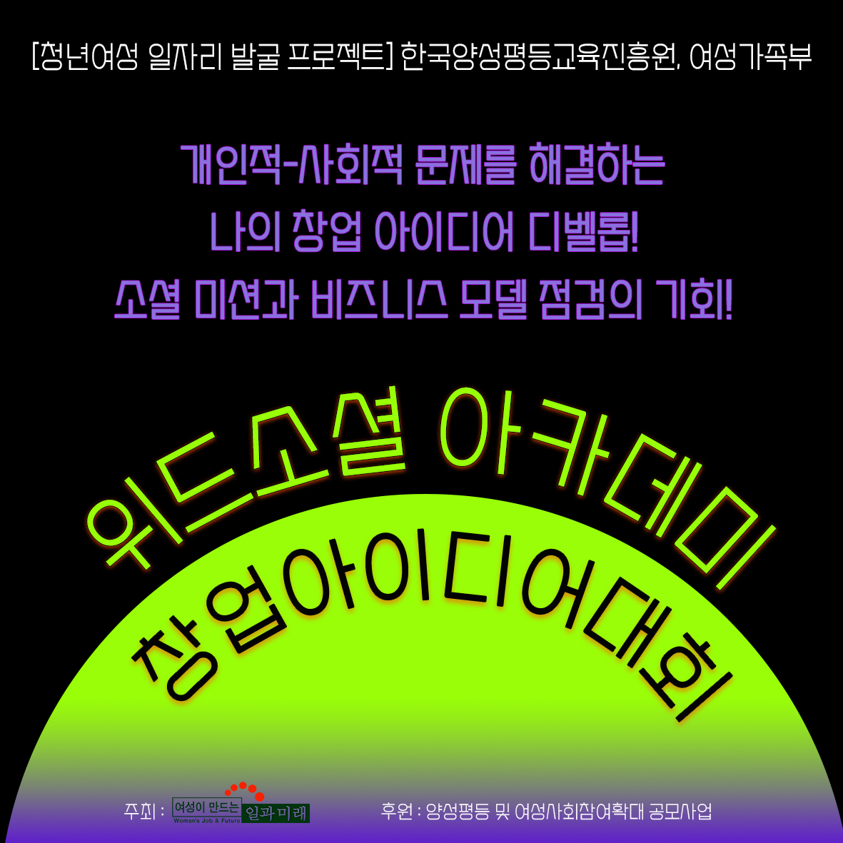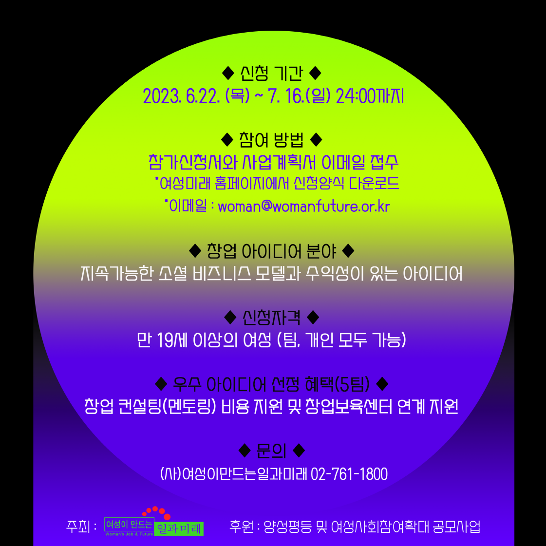 ★ 신청방법 : 참가신청서와 사업계획서 이메일 접수(woman@womanfuture.or.kr)