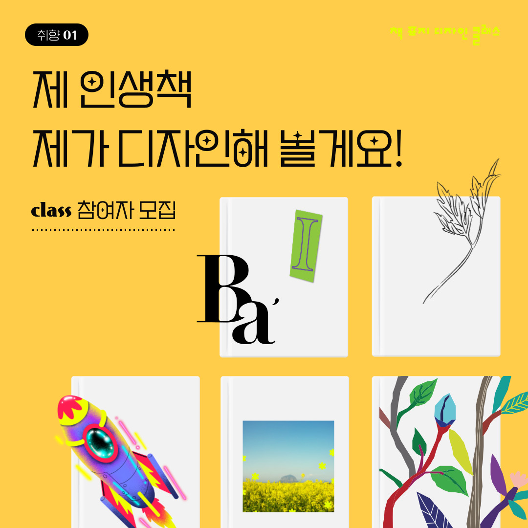 나의 취향으로 나의 인생책 표지를 디자인합니다. 평생 소장할 책으로, 사랑하는 이에게 선물한 책으로, 부모님 또는 은사님에게 감사함을 전할 책으로 등 자신만의 의미로써 책 표지를 디자인합니다. 멋진 도전, 멋진 경험 함께 만들어요! 🤗