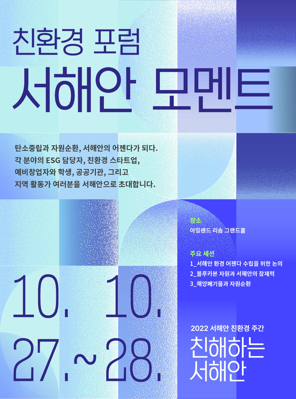 각 분야의 ESG 담당자, 친환경 스타트업, 예비창업자와 학생, 공공기관, 그리고 지역 활동가 여러분을 서해안으로 초대합니다.
