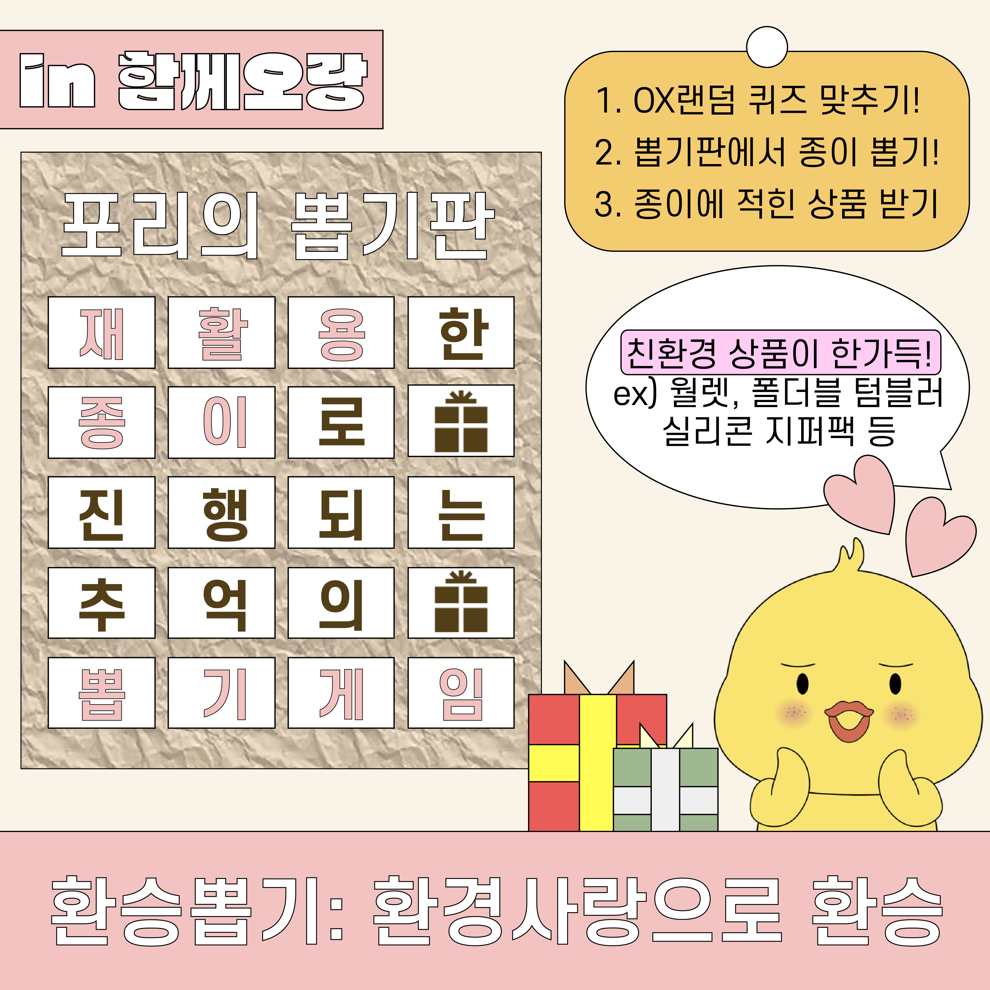 *프로그램에 참여할 병뚜껑이 부족하다면 포리생일 카페에 있는 인스타 스토리 이벤트 참여 후