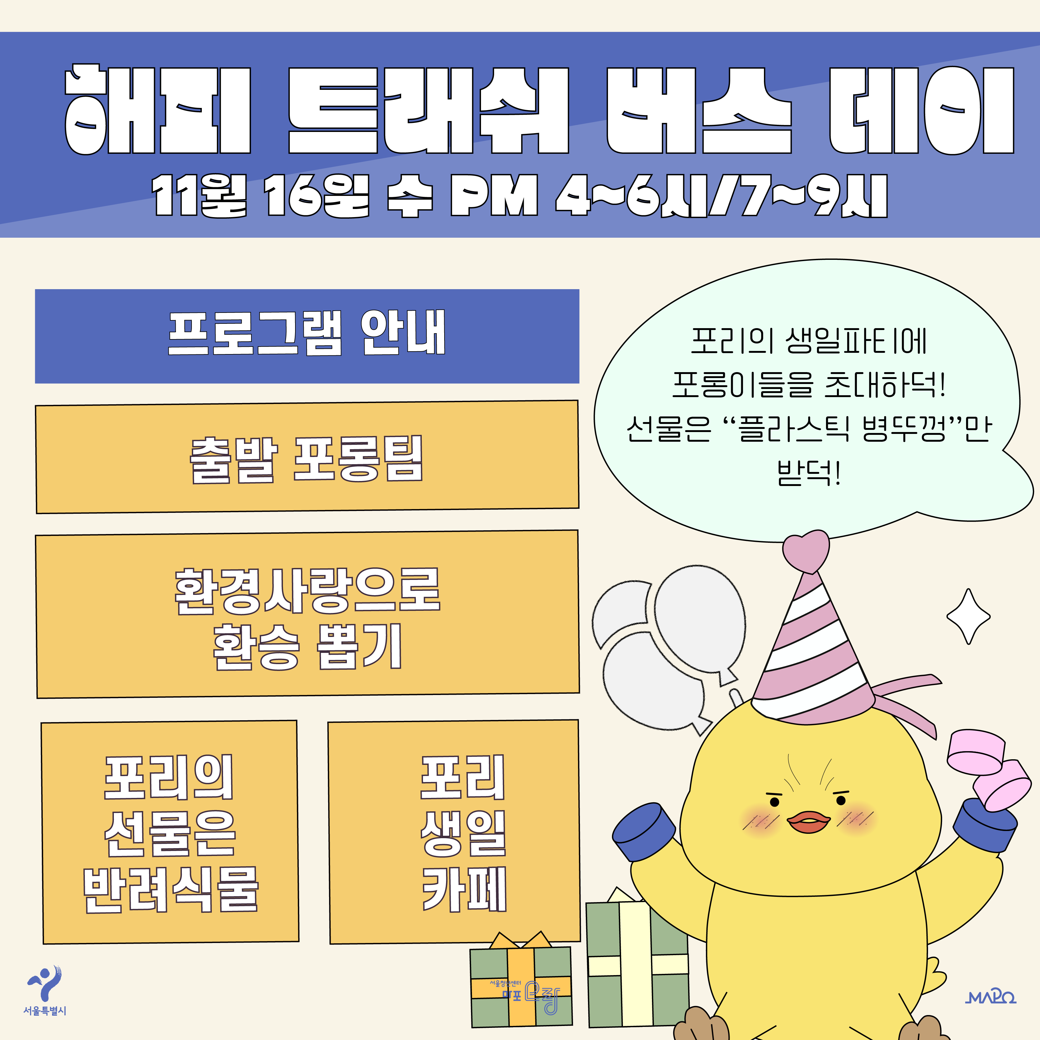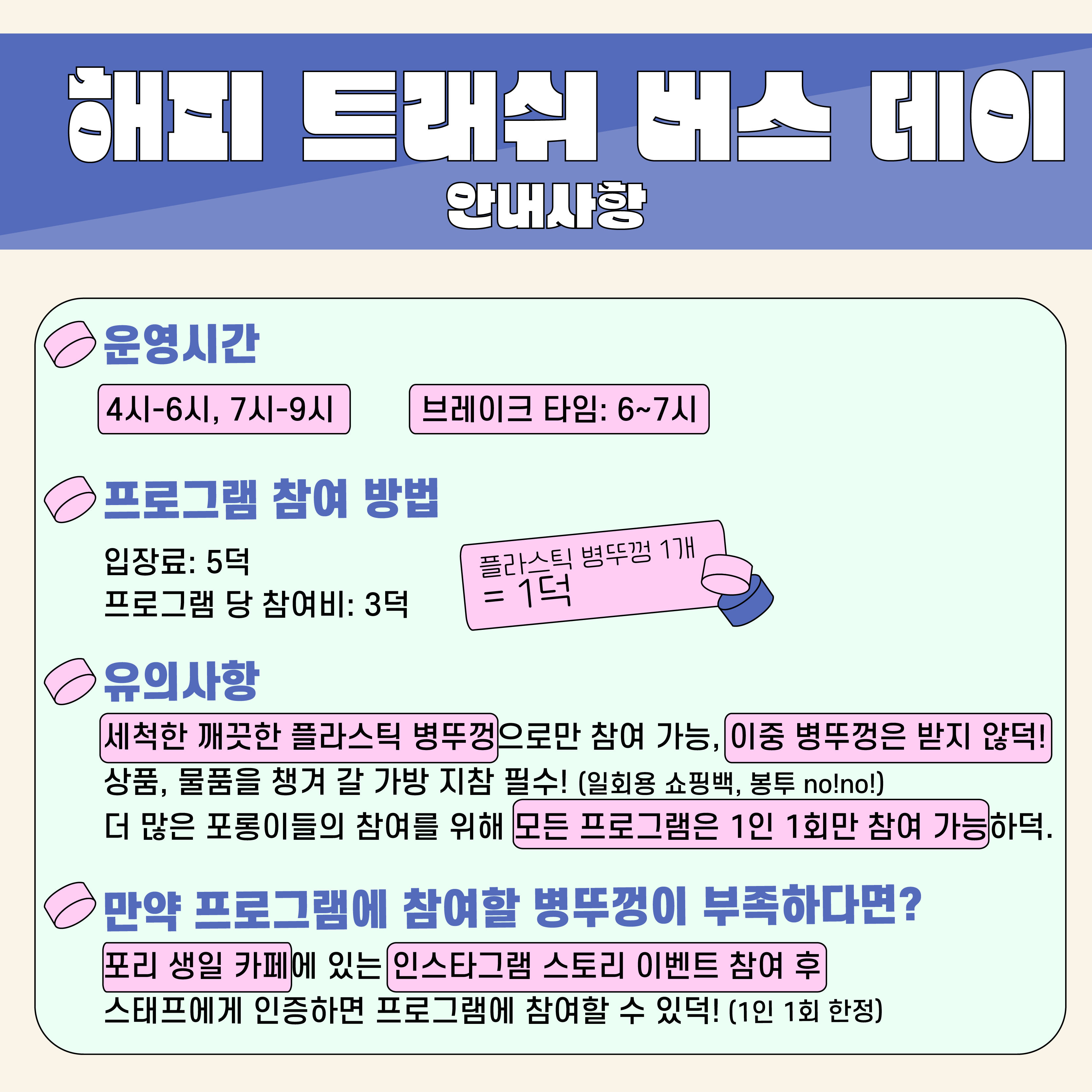 해피 트래쉬 버스 데이에 여러분을 초대하덕!!