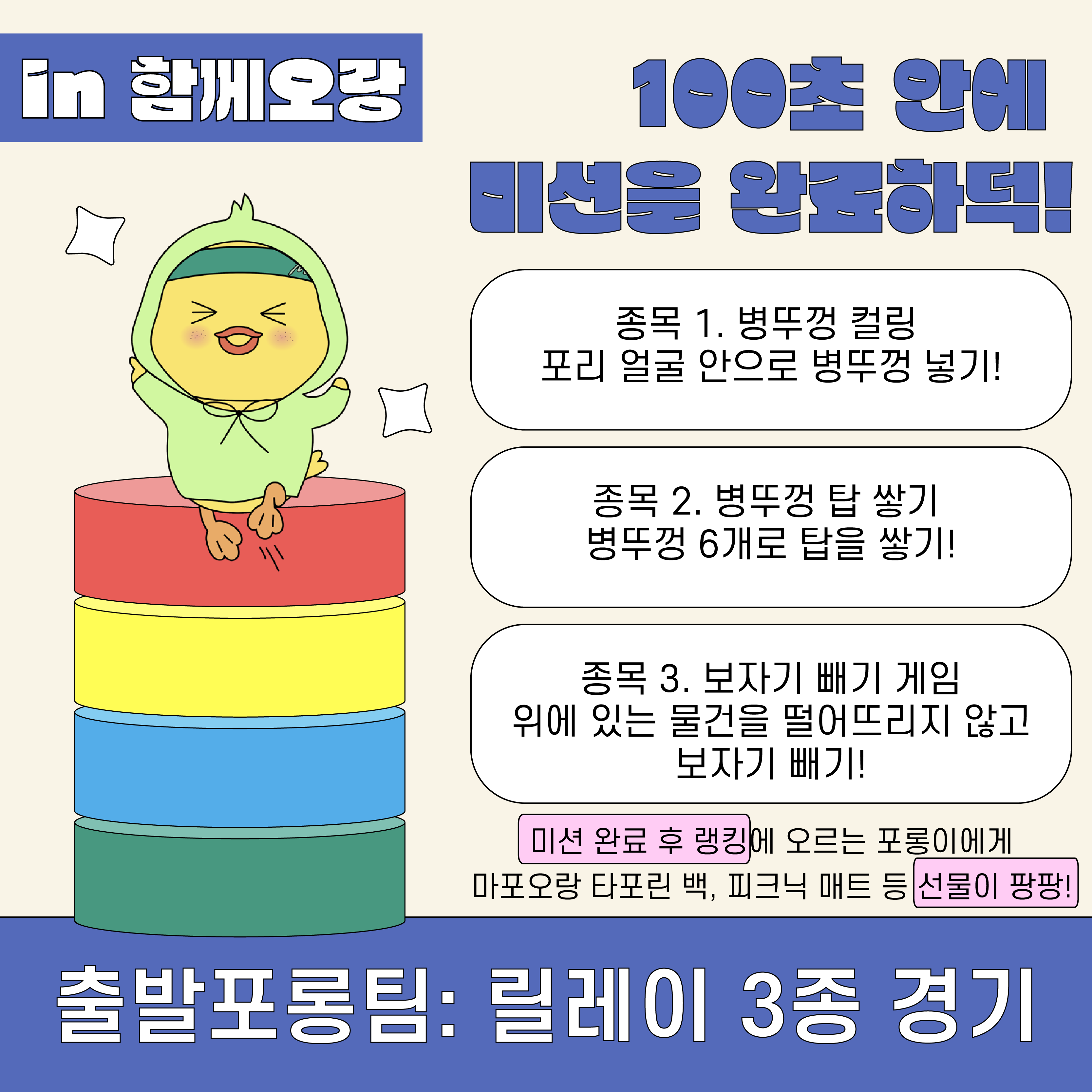 미션 완료 후 랭킹에 오르는 포롱이에게 마포오랑 타포린 백, 피크닉 매트 등 선물이 팡팡!