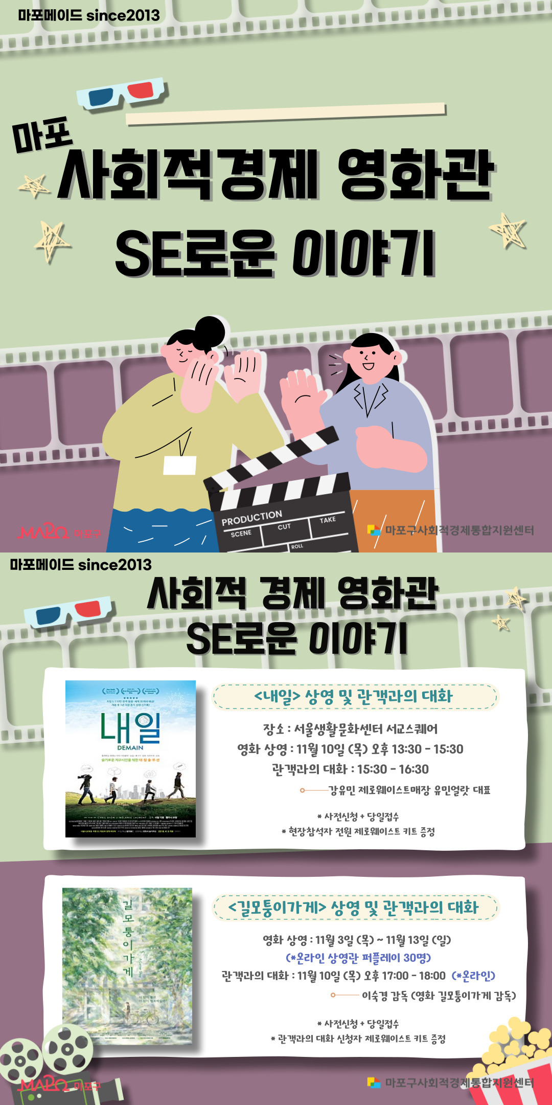프로그램 – 영화 <내일> + 이야기 나눔 (강유민 제로웨이스트 매장 유민얼랏 대표) : 2022년 11월 10일 (목) 오후 1시 30분 ~ 4시 30분 : 서울생활문화센터 서교 스퀘어 : 참여자 전원 제로웨이스트 키트 증정