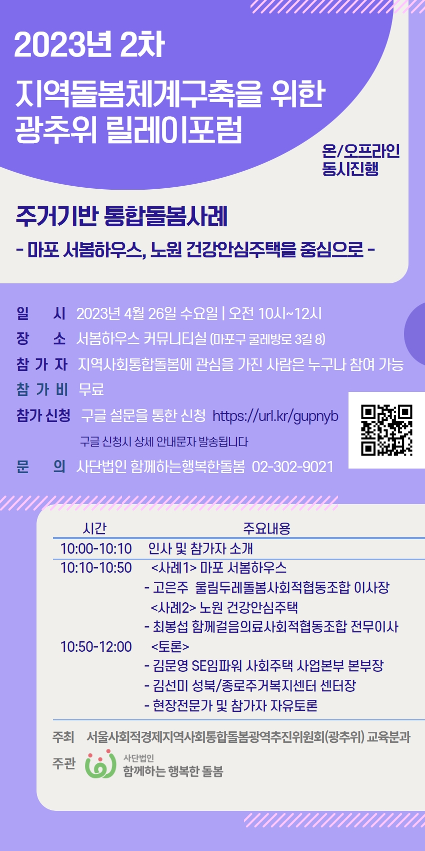 *주제: 주거기반 통합돌봄사례 -마포 서봄하우스, 노원 건강안심주택을 중심으로-