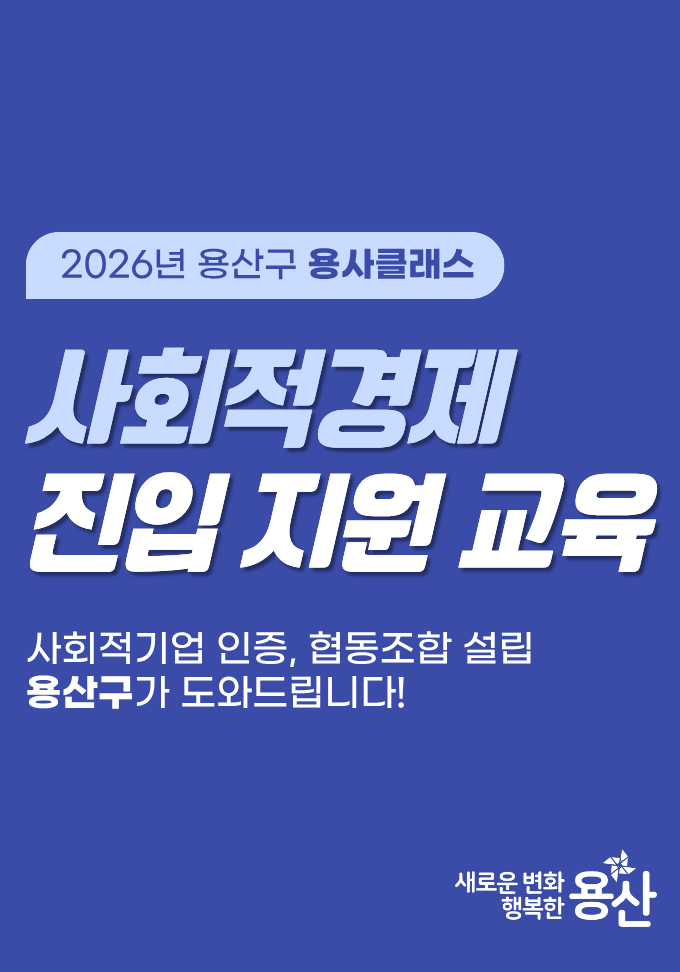 ![[교육생 모집] 2026년 「용사클래스」 사회적기업 인증·협동조합 설립 교육 참여자 모집 이미지1](https://www.yongsan.go.kr/editorUpload/images/000132/20260225100658119_E2NVEL9L.png)