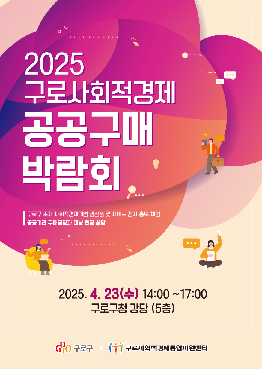 2025년 구로사회적경제 공공구매 박람회 일시 2024-04-23 ~ 2024-04-23 주최/주관 구로구, 구로사회적경제통합지원센터 장소 구로구청 강당(5층) 모집기간 ~ 참가비 0원 관련 URL 신청/문의 이메일 gurosesc@gmail.com 신청/문의 전화 02-3666-9845 짧은주소 https://sehub.net/tH2YU 수정 댓글이 닫혀있습니다.