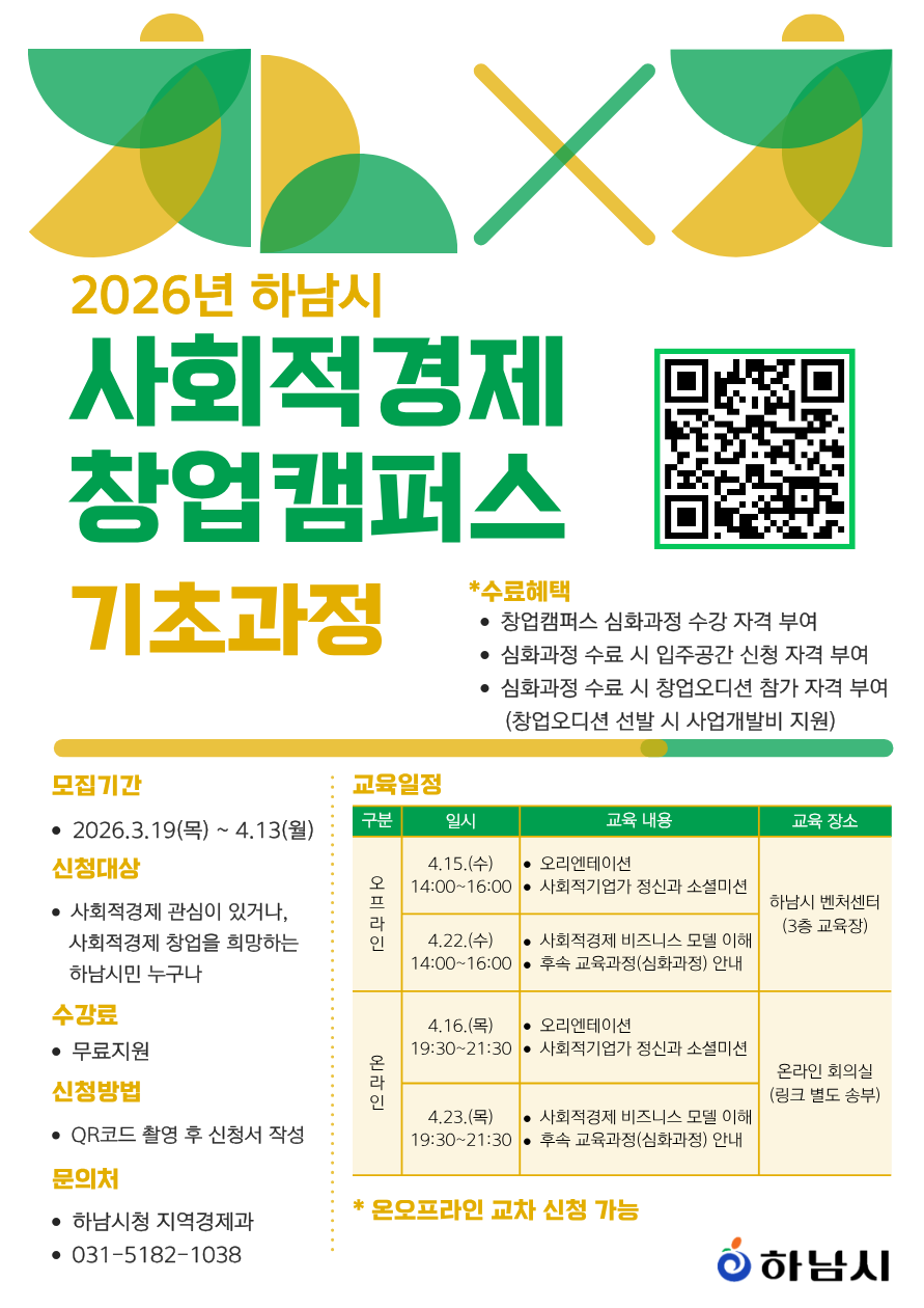 – 모집대상 : 하남시 지역 내 사회적경제 창업을 희망하거나 사회적경제에 관심 있는 하남시민
