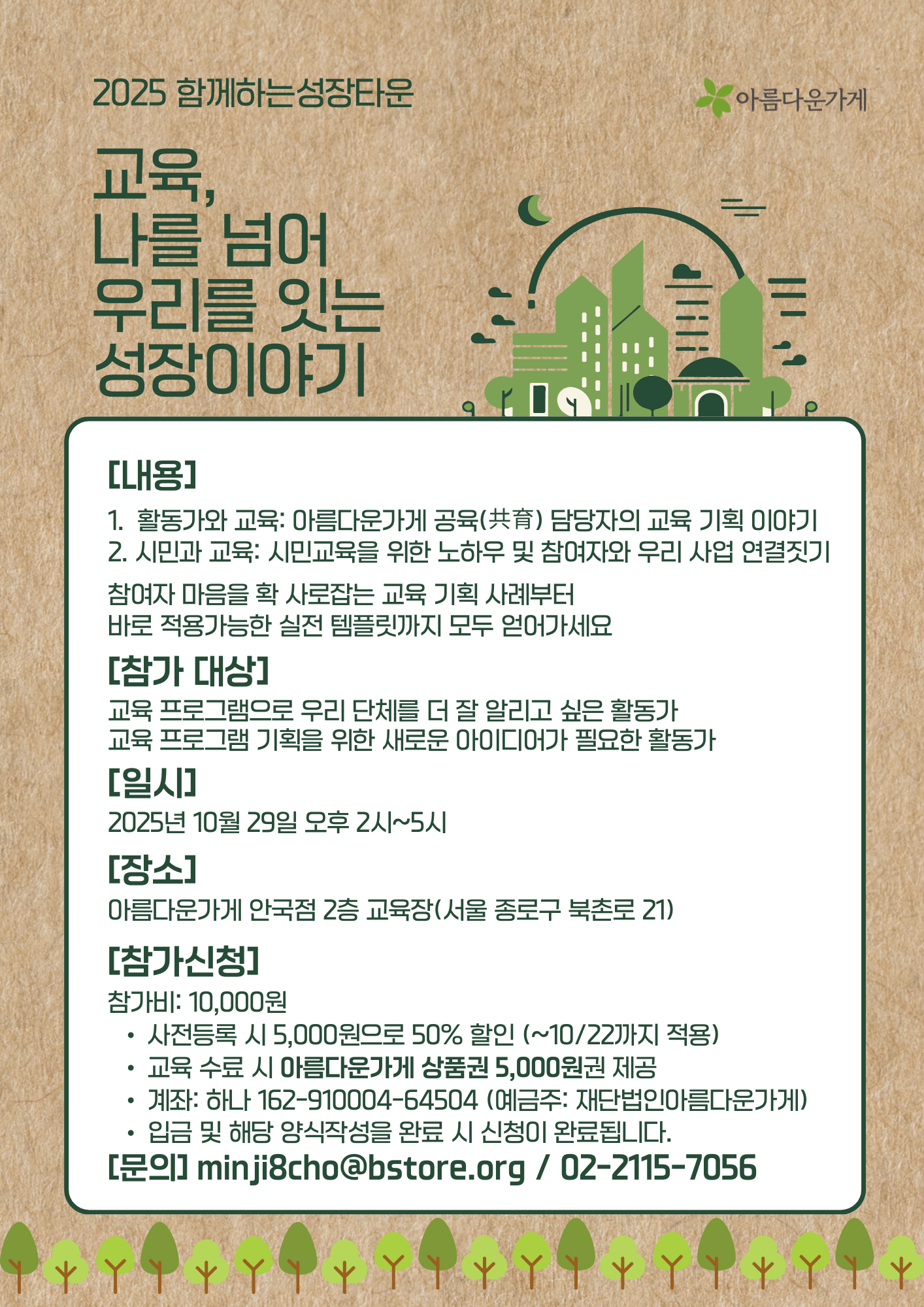 2025-10-29 ~ | 아름다운가게 안국점 2층 교육장(서울 종로구 북촌로 2) | 아름다운가게