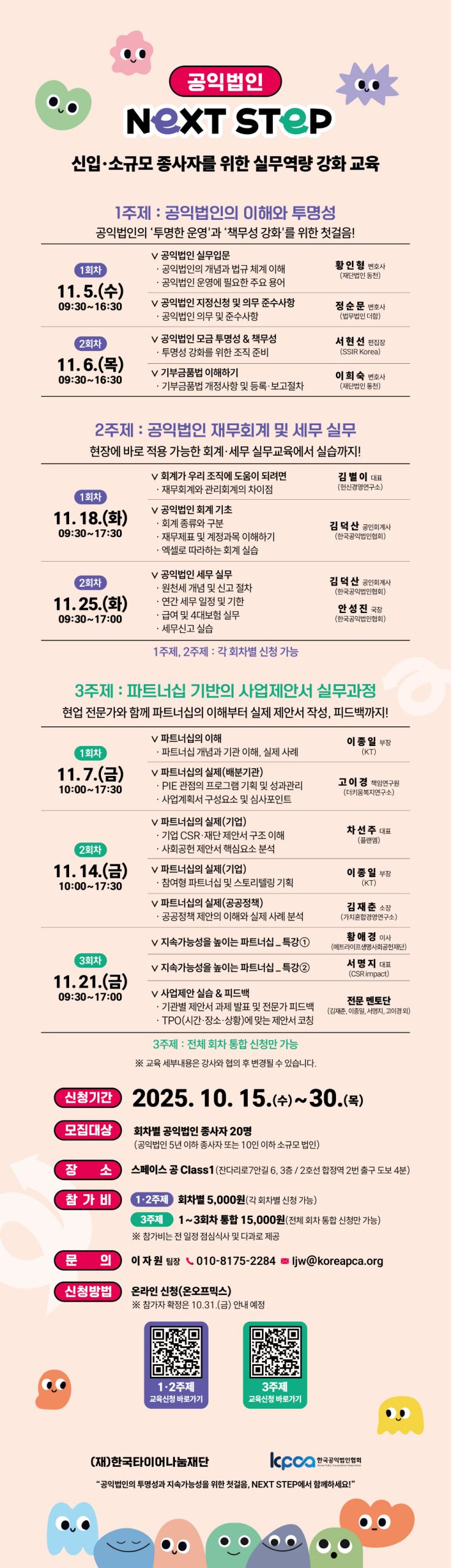 2025-11-05 ~ 2025-11-25 | 스페이스 공(서울시 마포구 잔다리로7안길 6, 3층) | 한국공익법인협회, 한국타이어나눔재단