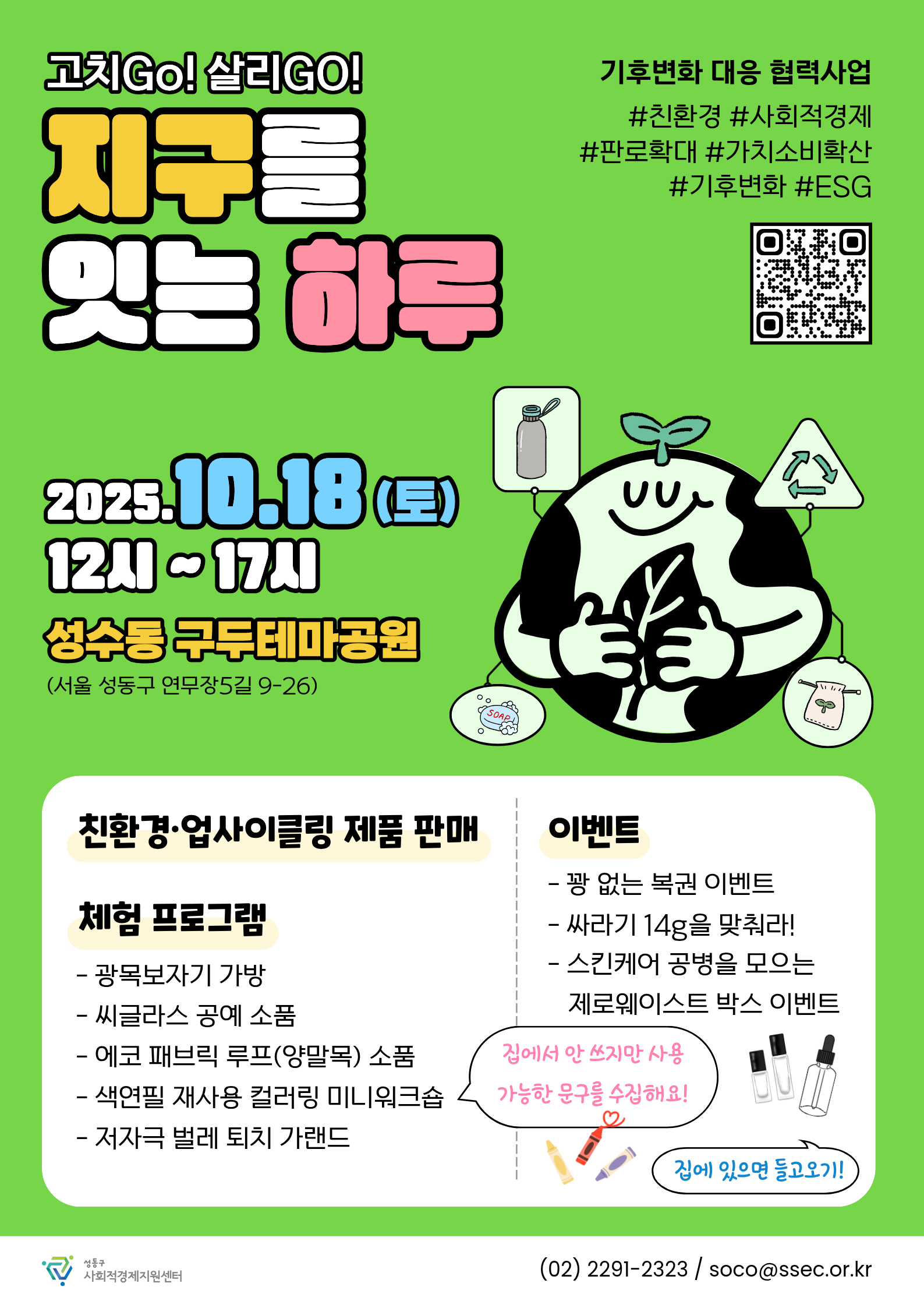 2025-10-18 ~ 2025-10-18 | 성수동 구두테마공원 (서울 성동구 연무장5길 9-26) | 성동구사회적경제지원센터